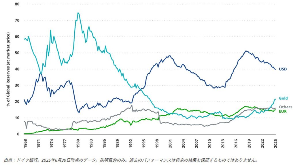 つまり、金は「インフレ対策」だけでなく、通貨システムの“揺らぎ”に備えるための防衛資産として再評価されているのです。