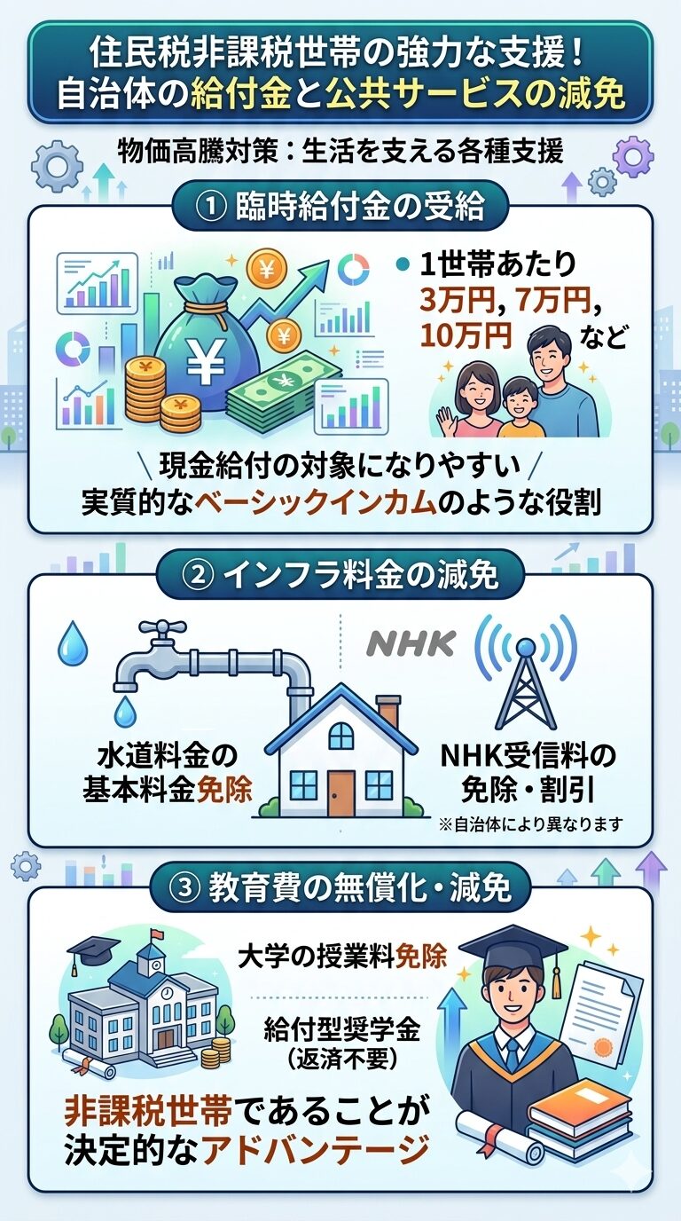 この手法の真の恐ろしさであり、かつ最大のメリットは、所得を抑えることで「住民税非課税世帯」という最強のステータスを手に入れられる点にあります。