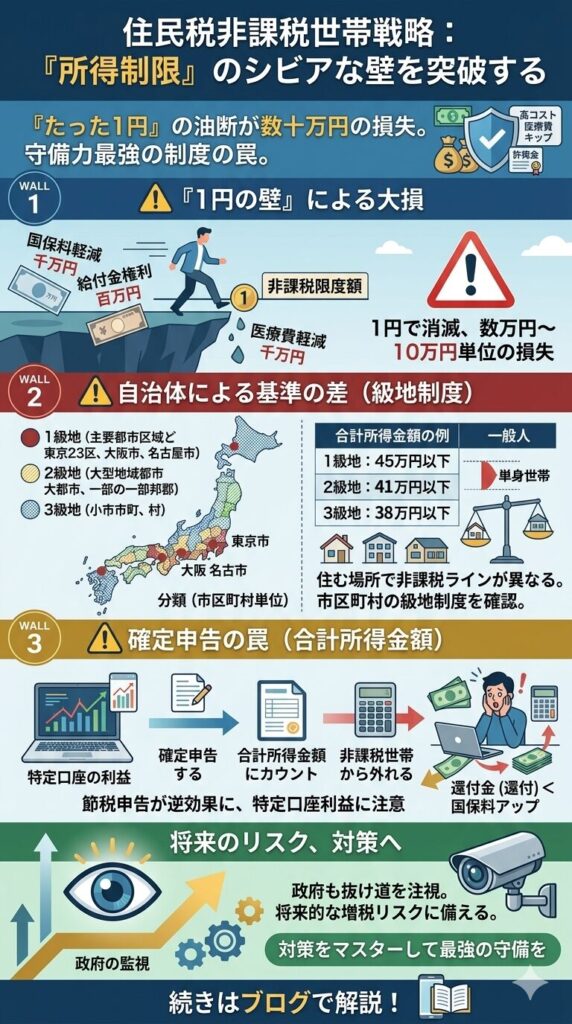 住民税非課税世帯の恩恵は非常に強力ですが、その境界線(ボーダーライン)は極めてシビアです。