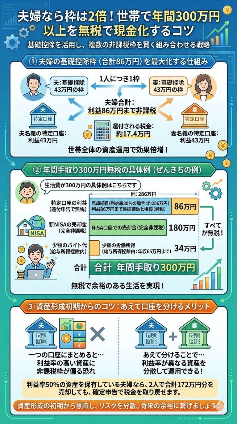 夫婦なら枠は2倍!世帯で年間300万円以上を無税で現金化するコツ