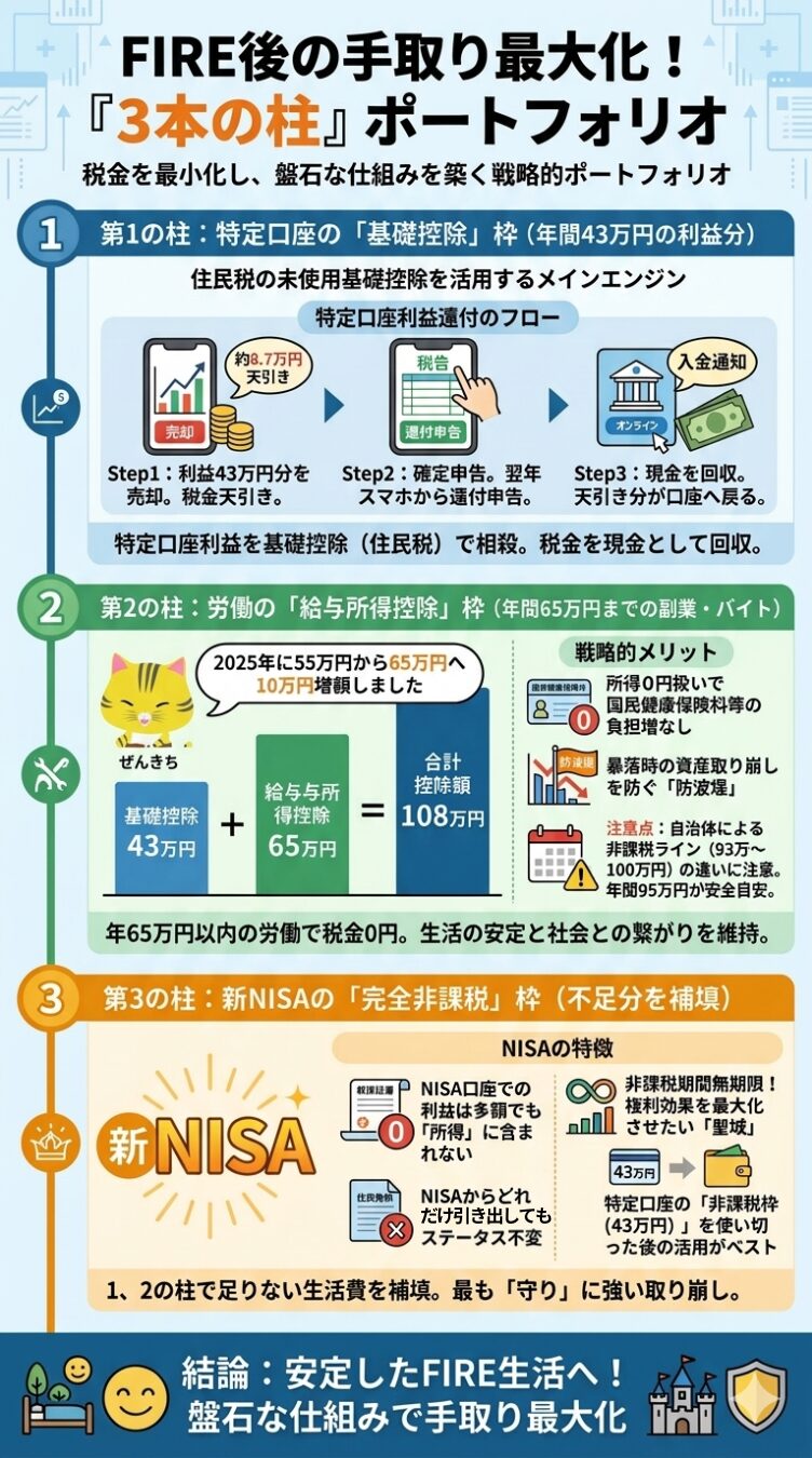 FIRE後の生活を安定させるのは、単なる「節約」ではなく、複数の制度をパズルのように組み合わせる「戦略的なポートフォリオ」です。
