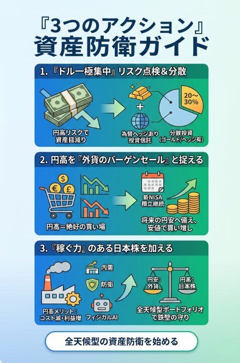 2026年、私たちが取るべきアクションは、単なる「外貨買い」でも「円への回帰」でもありません。