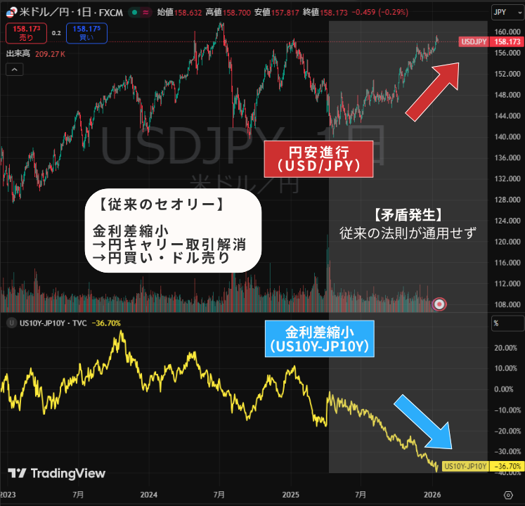 しかし、現実のマーケットはその教えをあざ笑うかのように、構造的な「円安」の波に飲み込まれています。