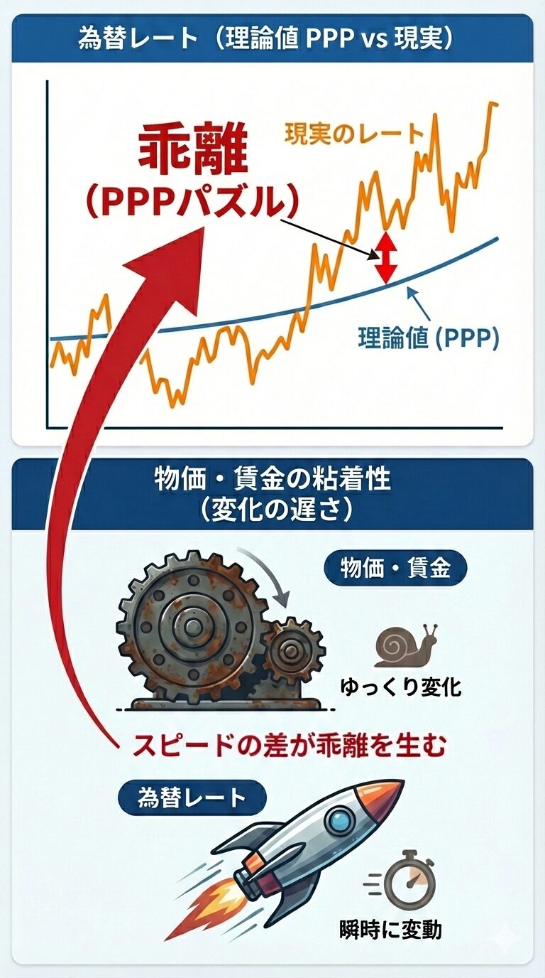 現実との乖離「PPPパズル」:なぜ理論通りに円高にならないのか?