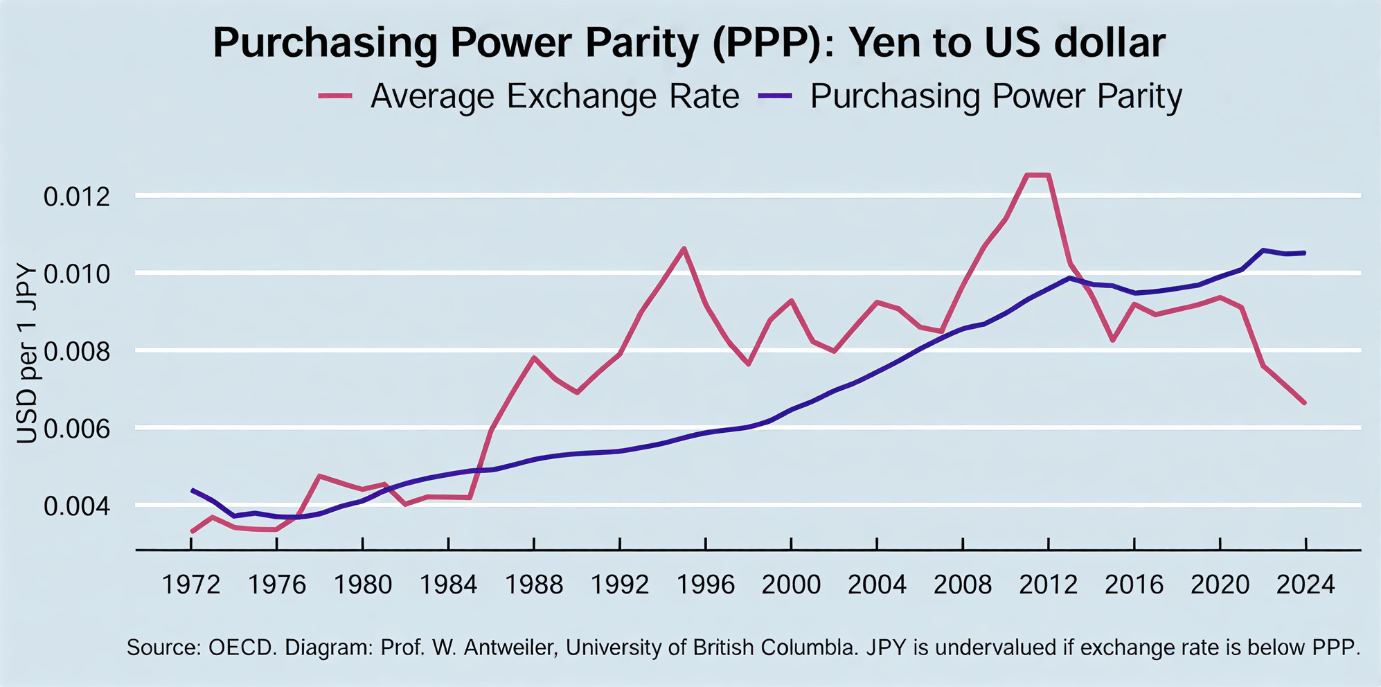 市場は「今の日本には昔ほどの稼ぐ力がない」と冷静に判断し、それが理論値(PPP)を無視した円安という形で現れているのです。