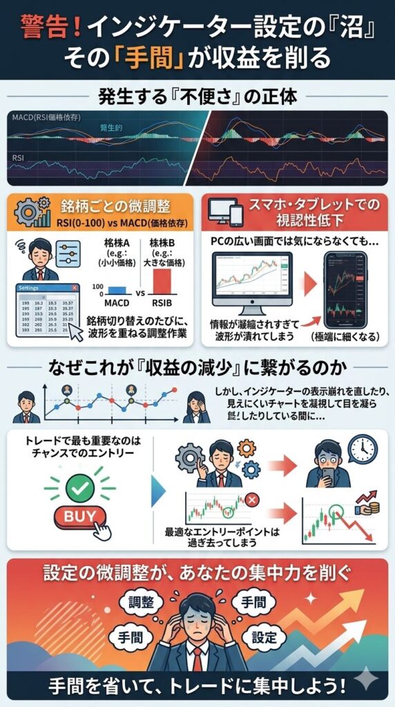 1枠にインジケーターを詰め込む工夫は素晴らしい技術ですが、それはあくまで制限の中でのサバイバル術に過ぎません。